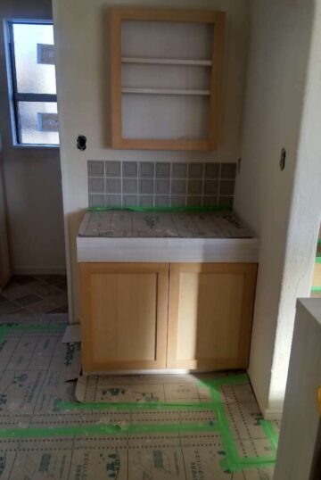 キッチン廻りにブリックが貼られました!ブリックも数や配置が絶妙でオシャレですね!料理が楽しくなりそうです♪